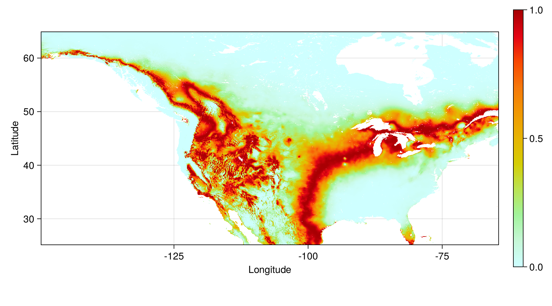 SimpleSDMPredictor(RasterData(EarthEnv, LandCover), layer=12; boundingbox...)